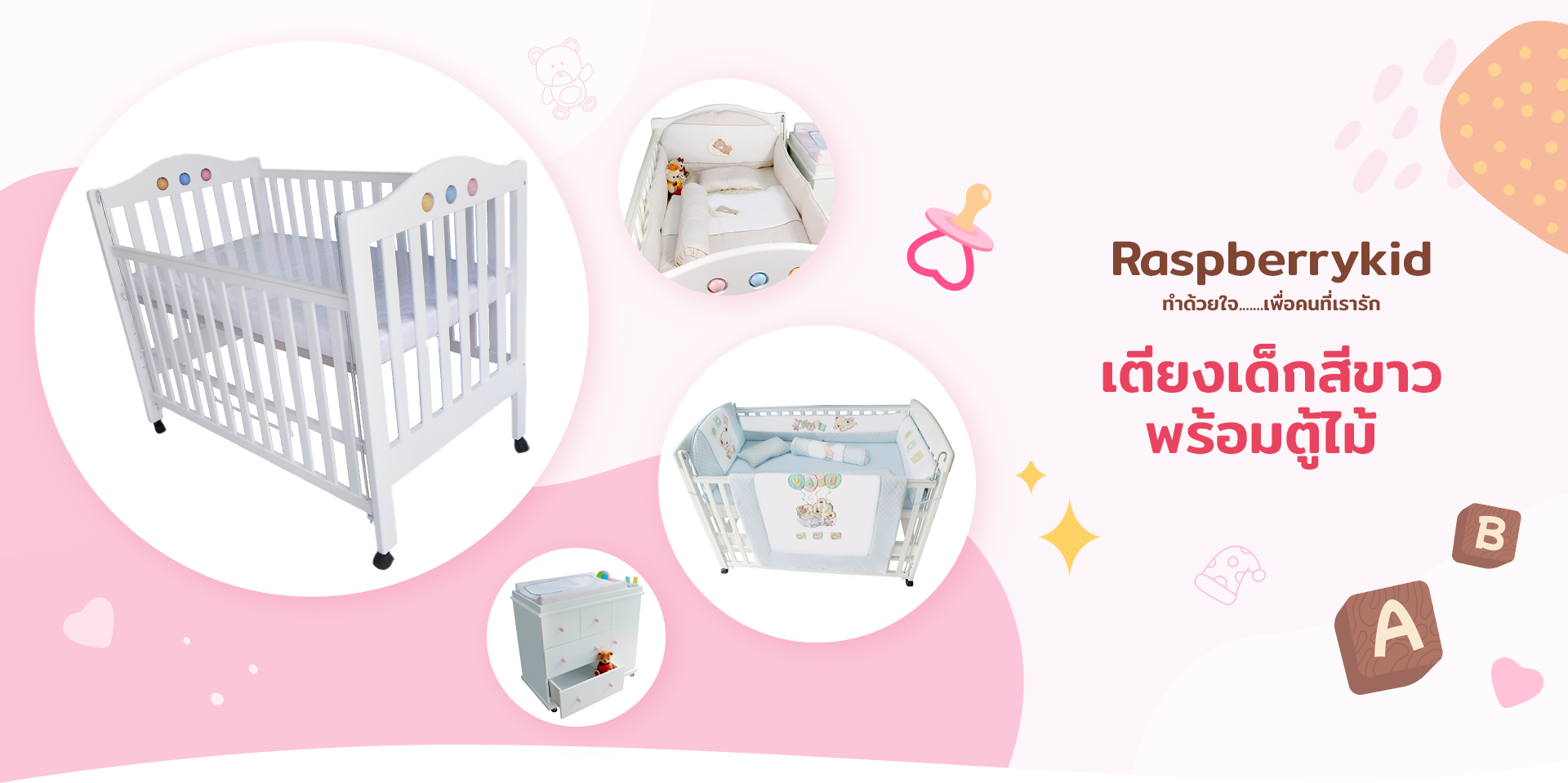 เตียงเด็กอ่อน ตู้ใส่ของที่ผลิตจากไม้ยางพาราเกรดหนึ่ง รวมถึง